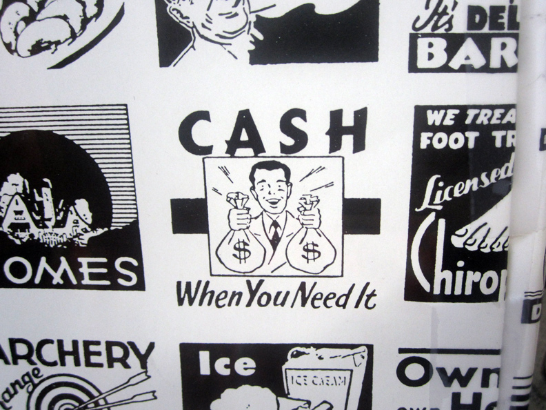 “CASH When You Need It” – detail vintage KEN BROWN wrapping paper.