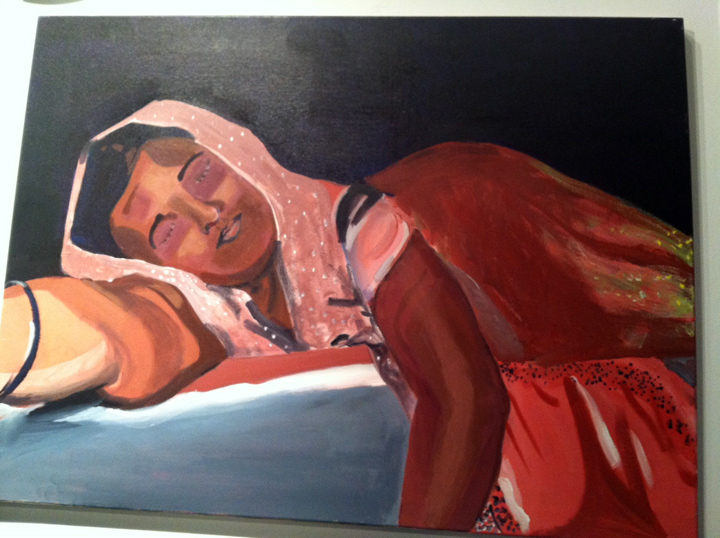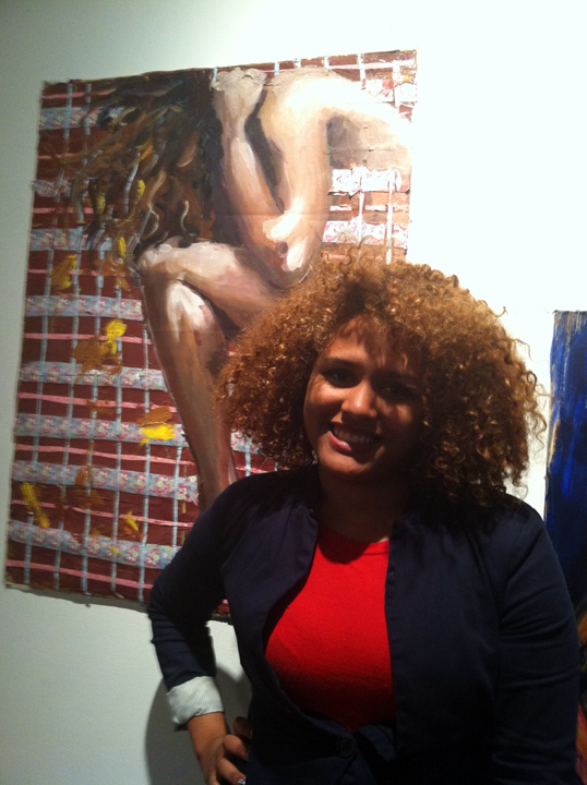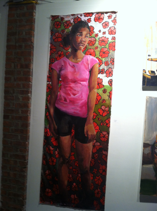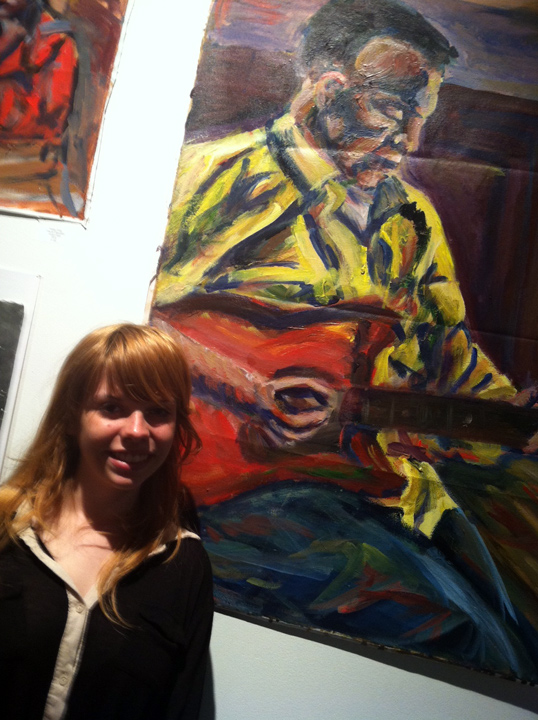 KELSEY REILLY, with her painting, ‘Daddy Playing I’, acrylic paint, 2012 – is off to Parsons, here in NYC.