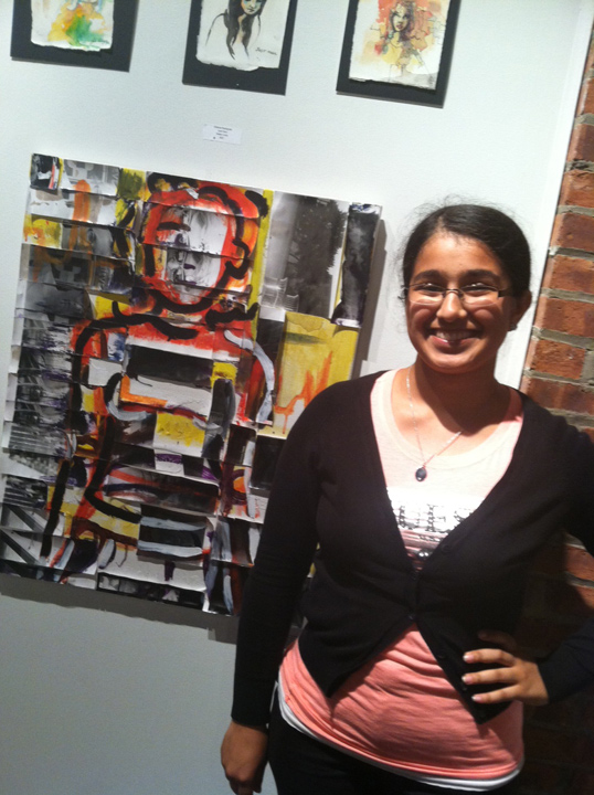DILENIA RODRIGUEZ, with her painting, ‘Girl and Stripes’, mixed media – is off to RISD / RHODE ISLAND SCHOOL OF DESIGN.
