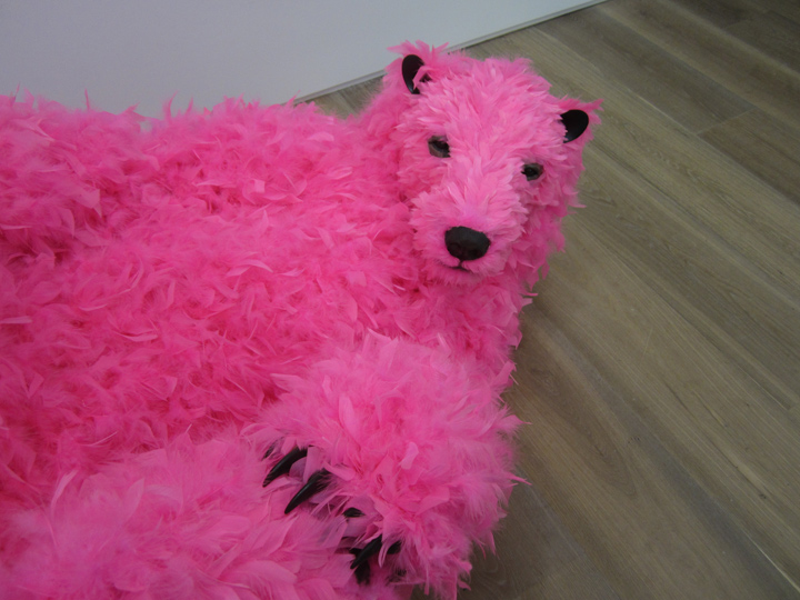 Urethane foam, plastic, feathers. 48 x 62-1/4 x 39 in.