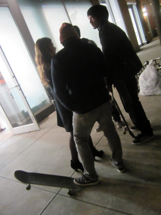 on the street outside the gallery, skateboarders . . rule.