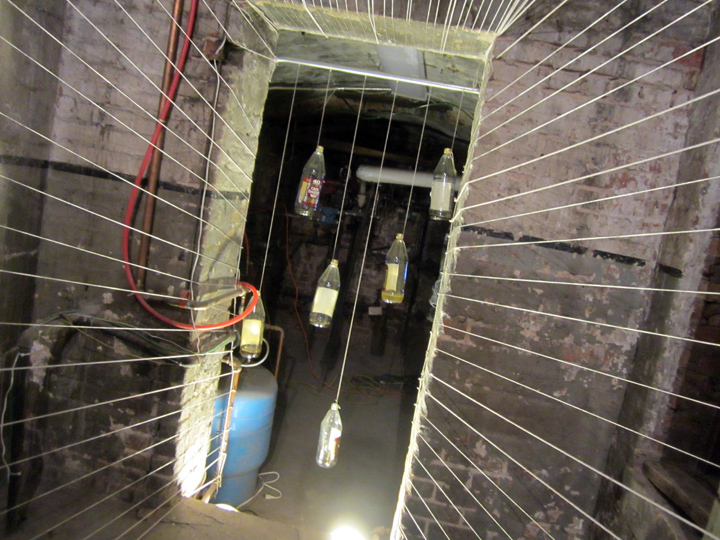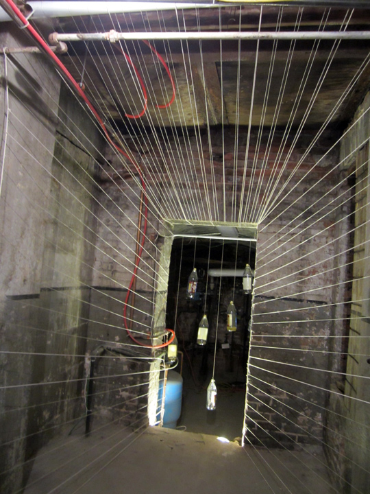 thrown up against this ancient NYC building. the ground floor and 2 sub-levels, blurring into one.