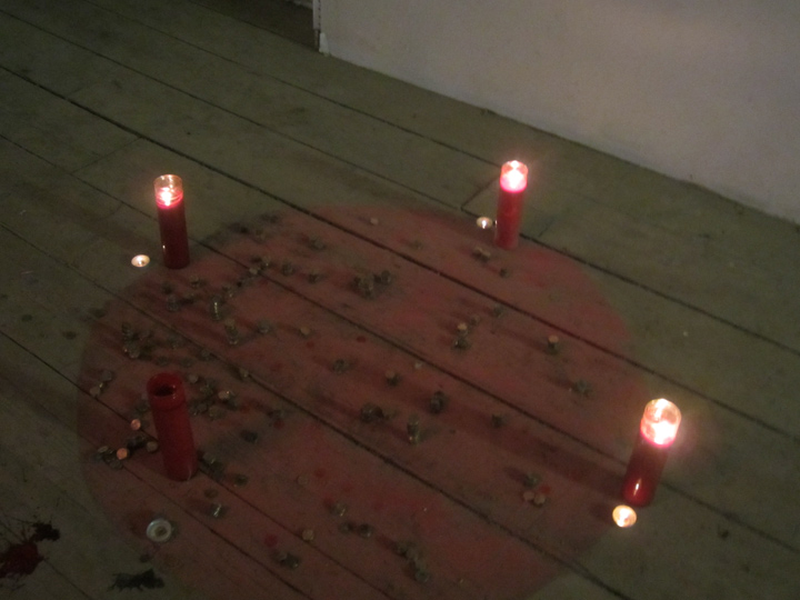 and then just a little further down the room, was this . . magic circle of lit red candles.