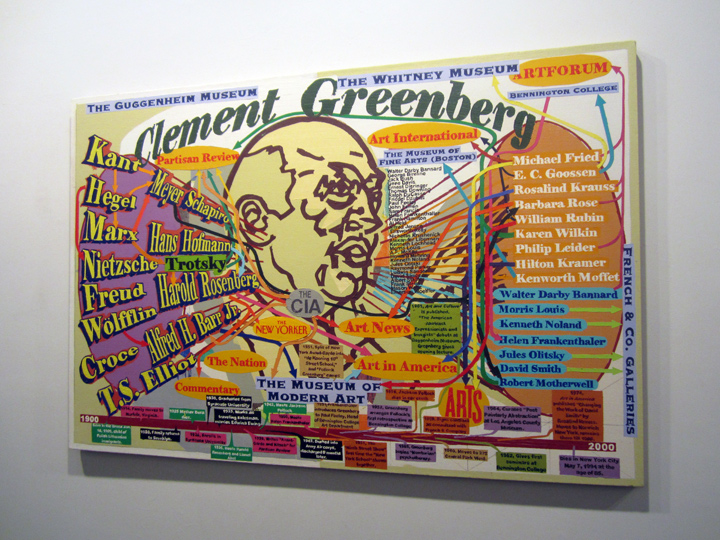 I found this one, particularly interesting, mostly because of the overall composition, which centered on the simple, but spirited . . cartoon-like portrait of CLEMENT GREENBERG, and the way the pictorial/narrative focus on .. a single, individual ‘player’. . evolved.
