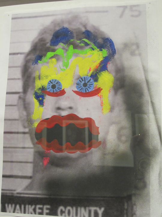 acrylic, china marker, gouache, xerography on paper. 8.5 x 11 in.