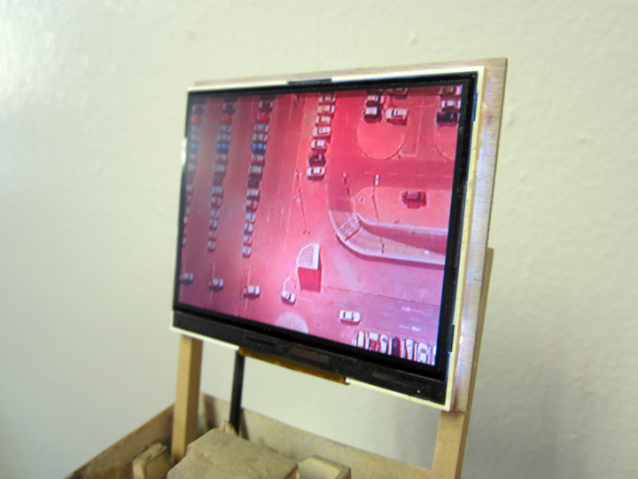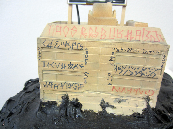 JENNIFER & KEVIN McCOY, ‘Old Headquarters’, 2012. mixed media sculpture, LED screen, media player, electronics, coming it at a small, even for a miniature !! scale of: 12 x 12 x 10 in.