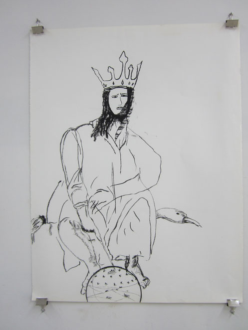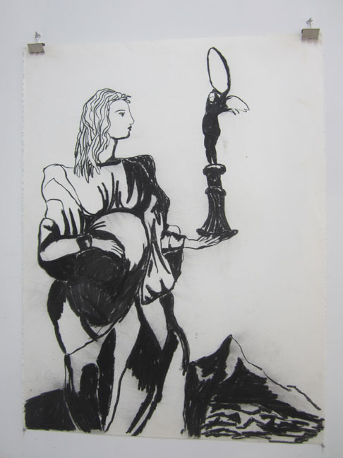 medieval, uncertain. stark. swift. also the ‘hand-made’ quality, the free line. artisanal. you have to shut your eyes, and understand when I was making these, the ELI BROADS of the world were buying, and only buying (!!) CINDY SHERMAN. the hyper-realist pictures generation. which isn’t to say I don’t like her work, because I do, I just say: I was a duck . . out of water.