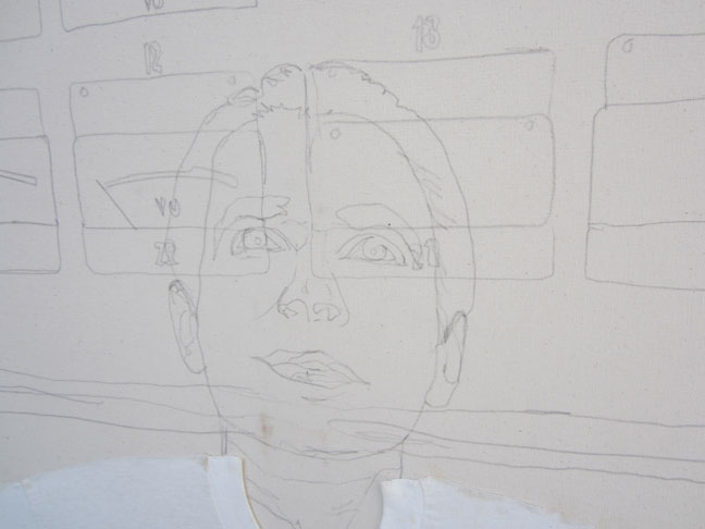 SIMON CERIGO, ‘Samurai’. pencil, acrylic paint and t-shirt. 7 ft x 6 ft.