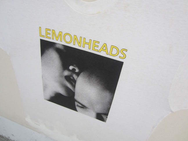 SIMON CERIGO, detail, ‘LEMONHEADS’. collaged t-shirt.