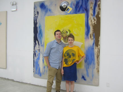 SIMON CERIGO, acrylic paint, t-shirt and found ‘vinyl’ on stretched canvas. 6 x 7 ft.