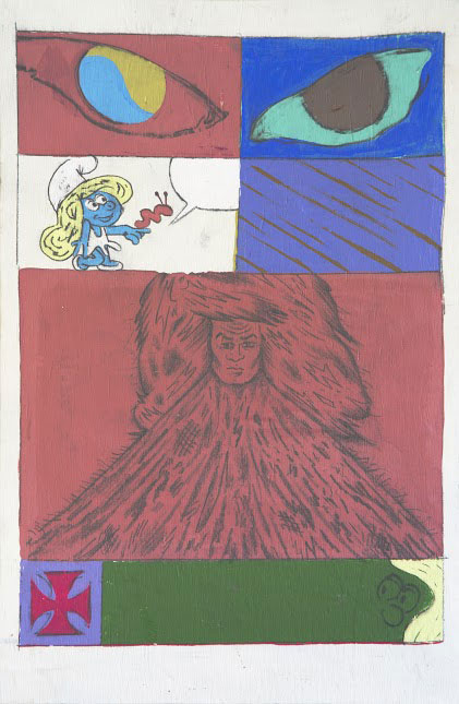 yes, that is a girl smurf – photo-bomb / time traveler ??!!!. ha.