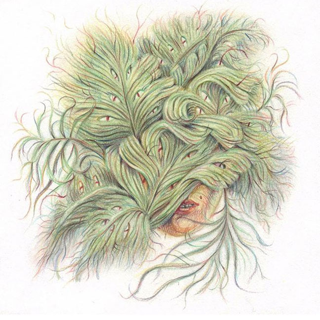 WINNIE TRUONG, ‘POST’, 2015. colored pencil on paper, 7 x 7 in. unique.
