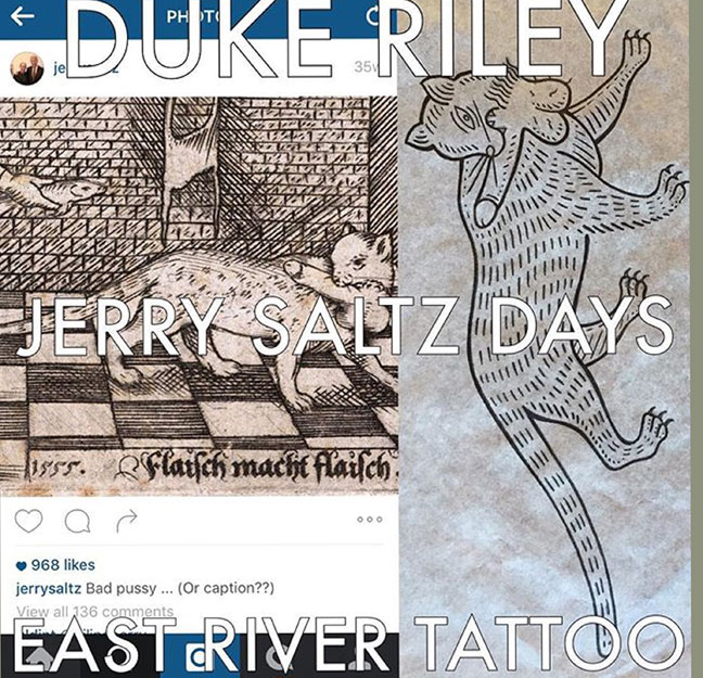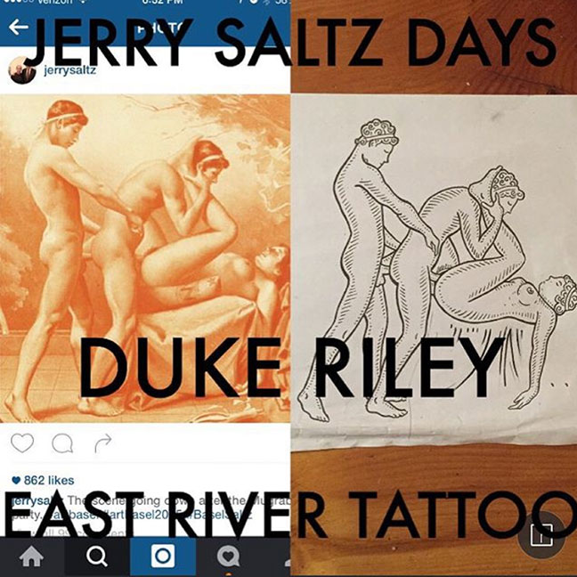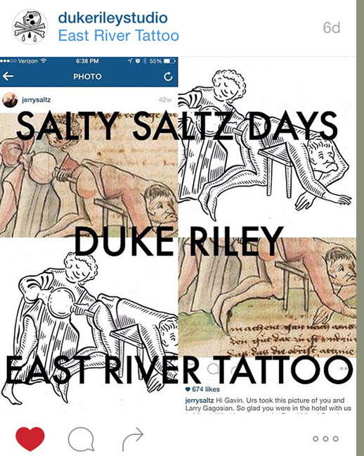 dukerileystudio: JERRY SALTZ DAYS at East River Tattoo. Pick any raunchy antiquated image off art critic @jerrysaltz Instagram feed and I’ll tattoo my version of it on you. Bookings: kittyjoe@eastrivertattoo.com
