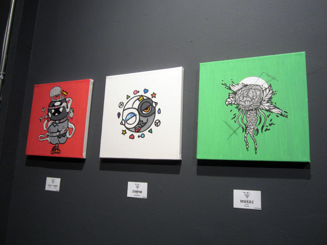 from left: a collab by MURRZ & ZROPRO, a canvas by ZROPRO, and a canvas by MURRZ.