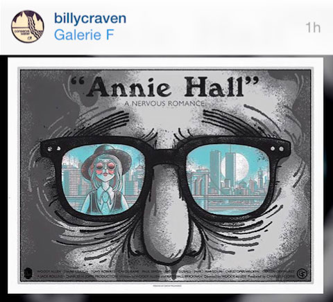 DREW MILLWARD . . . & GALERIE F, have collaborated on a poster/print for the LOGAN THEATRE presentation of . . ‘ANNIE HALL’ – ‘A NERVOUS ROMANCE’.