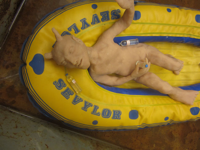 iron box, plastic, polymer clay, wire, aluminum foil & water.