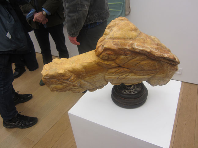 alabaster & salvaged barbells. 14 x 19.5 x 10 in.