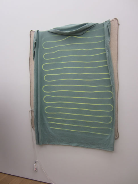 acrylic & crayon on bleached linen. 24 x 24 in.