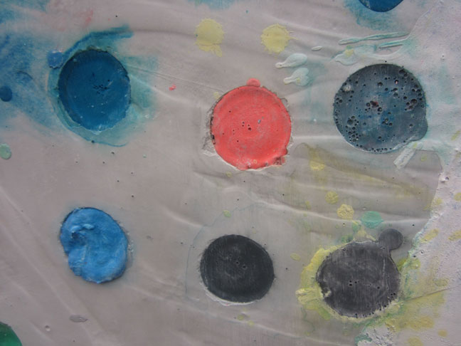 acrylic medium on lucite frame. 38 x 21.5 x 1.5 in.