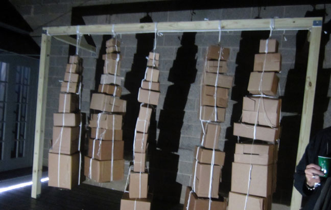 Cardboard, string, rope, wood, 12 x 8 x 4 ft.