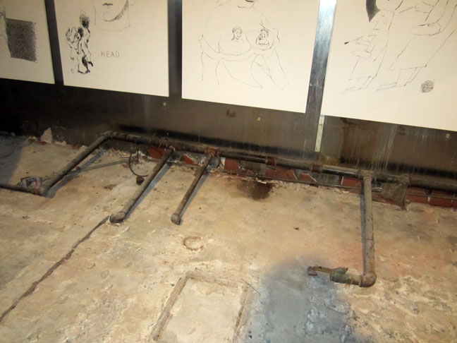 they scrubbed, maybe power washed the walls, but the resultant ‘camo’ of layers . . the residue of history remains. nice. patina.
