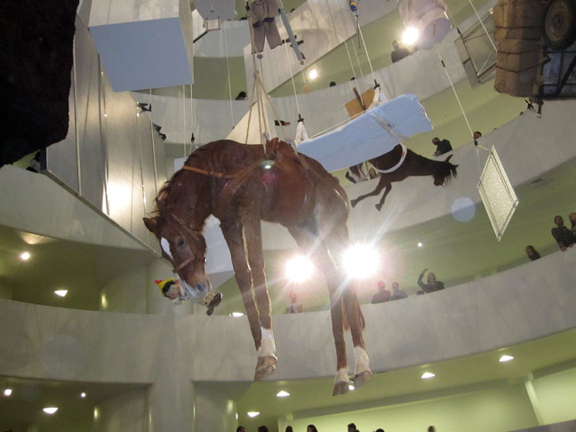 CATTELAN, ‘DONKEY’ . . and a view of the incredible CATTELAN retrospective, titled ‘ALL’ . . that took place at the GUGGENHEIM, NYC – winter of 2011.