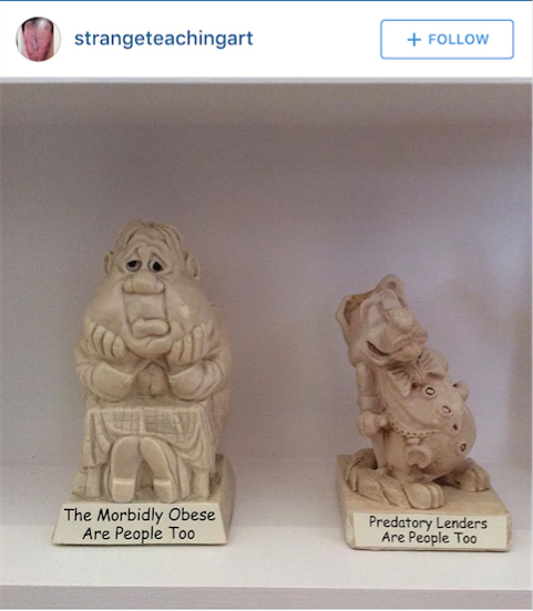 JONATHAN HOROWITZ, ‘THE MORBIDLY OBESE ARE PEOPLE TOO’ & ‘PREDATORY LENDERS ARE PEOPLE TOO’