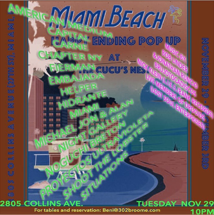 MIAMI BEACH – HAPPY ENDING POP UP . . at CUCU’S NEST