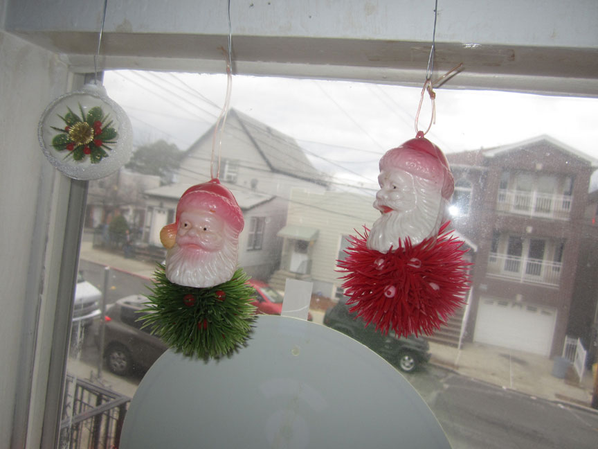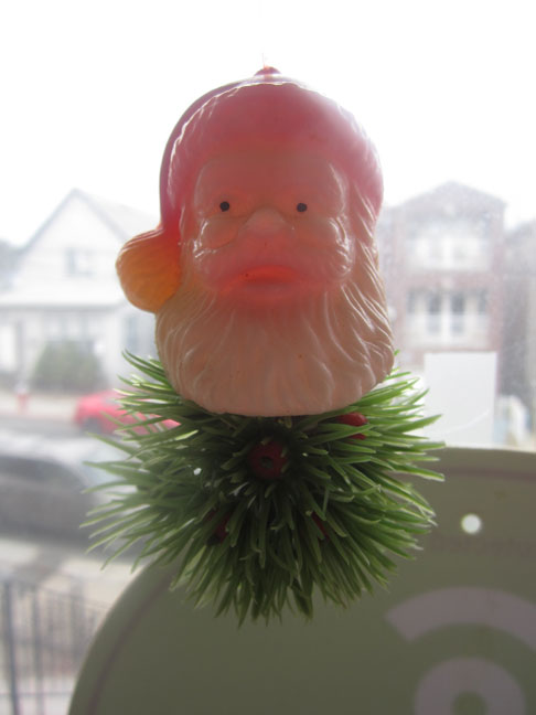 vintage plastic Santa Christmas tree ornaments, these are so wild – they defy the imagination.