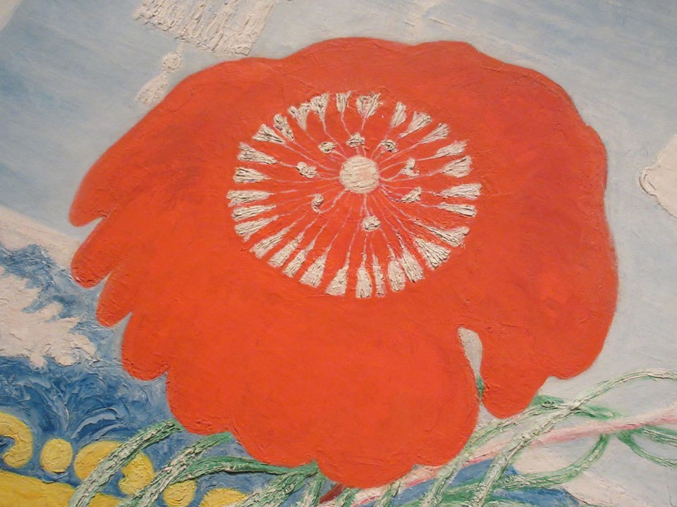 her ‘skinny’ brushwork – usually in black, top-painted as embellishment, is a detail that pops up throughout the exhibit – and is a nice re-discovery – re: painting technique.