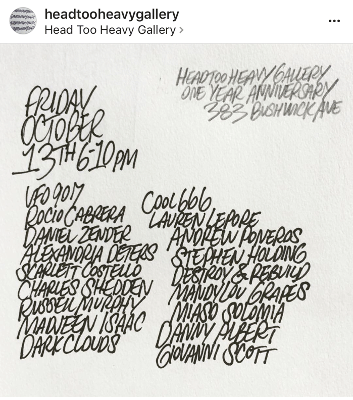 @headtooheavygallery: Hard Closing TN! don’t miss out on what critics are calling: “Hey man how come I wasn’t in the show? Wtf!” 6:00-10:00pm #tonight #today #thegodhour #october192017 #323bushwickave