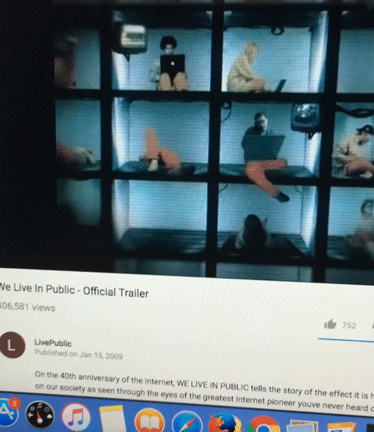 the opening shot of . . ‘WE LIVE IN PUBLIC’.