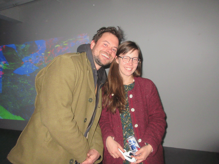 “who met in the MFA Painting program at YALE joined as ‘BLINN & LAMBERT’ in 2016 to collaboratively expand their interests in OPTICAL media, special effects, digital projection, and computer animation – the latter of which is reflected in their name, which references two basic material surface options in a 3D animation software: reflective (Blinn) and matte (Lambert).”