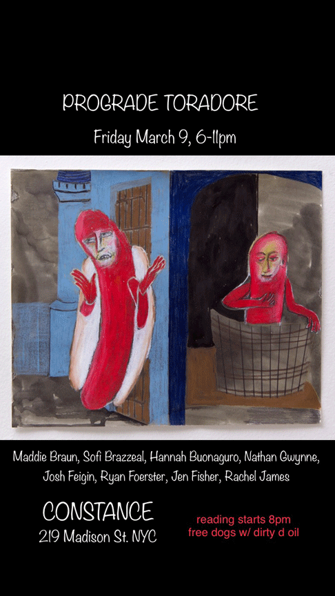 ~’PROGRADE TORADORE’ . . CONSTANCE / 219 MADISON ST – TO-NITE FRI MARCH 9 / 6-11 PM