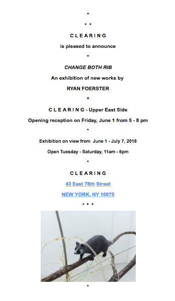 ~RYAN FOERSTER . . ‘CHANGE BOTH RIB’ / CLEARING UPTOWN / OPENING FRI JUNE 1