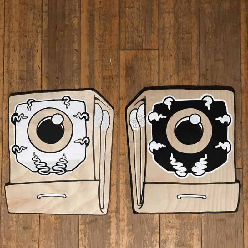 LUNGEBOX . . matchbooks, acrylic paint & paint pens on wood.