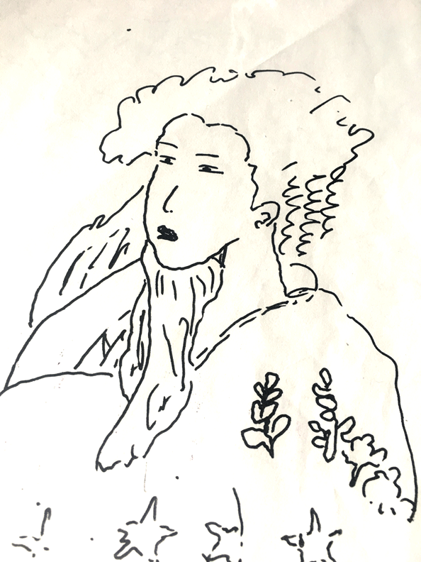 detail, NANCY SMITH, self-portrait, ‘after Ukiyo-e woodblock print’.