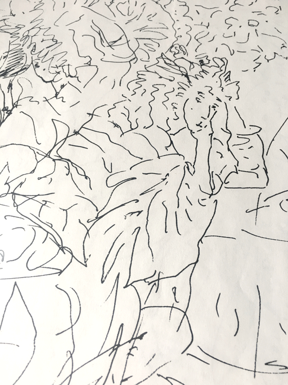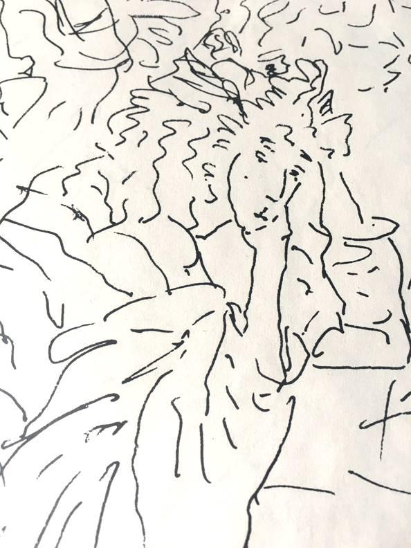 and, though I also try to “lift the mask”, my pursuit is purely graphic, pencil or, pen & ink on paper, or more recently vellum.