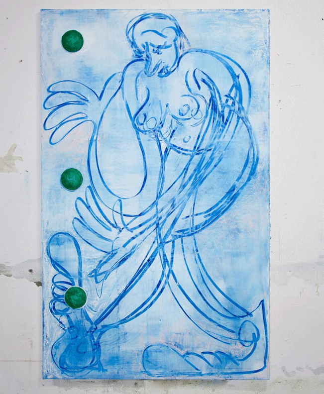 ANTONE KONST, ‘Juggler’, with a peek . . at a STEPHEN BENENSON canvas, at right.