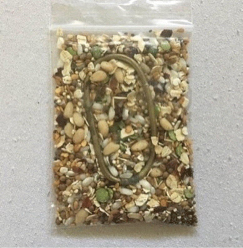 brass ring with chia seeds, coriander seeds, cumin, flax, lentils, oats, pine nuts, quinoa,
