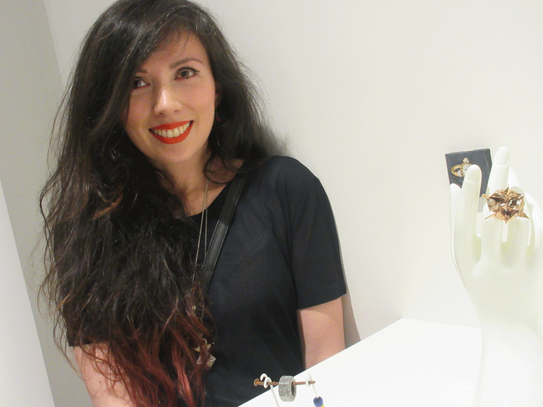 DESTINY MONTAGUE at the opening . . . with her ‘Big Ringer’ – on the hand model.