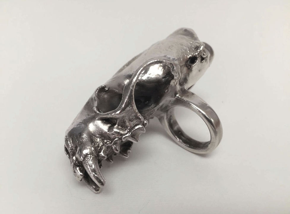 silver plated marten skull / 1.8.x 1.6 x 2.8 in.