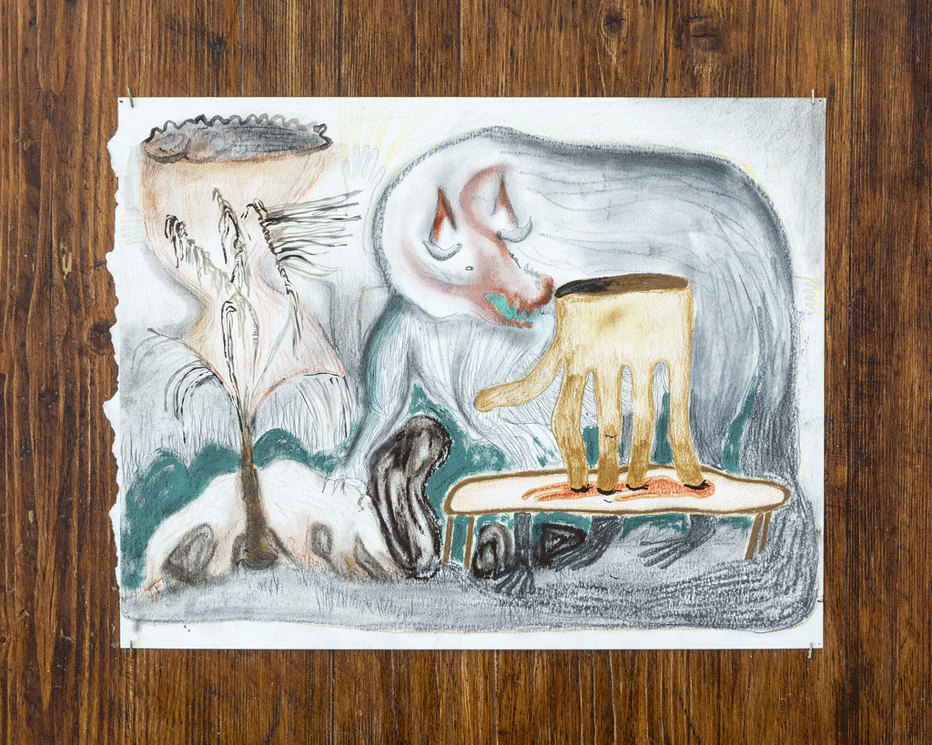 pencil, grahite, charcoal. gouache, dry pastel, oil pastel & acrylic on paper / 11 x 14 in.