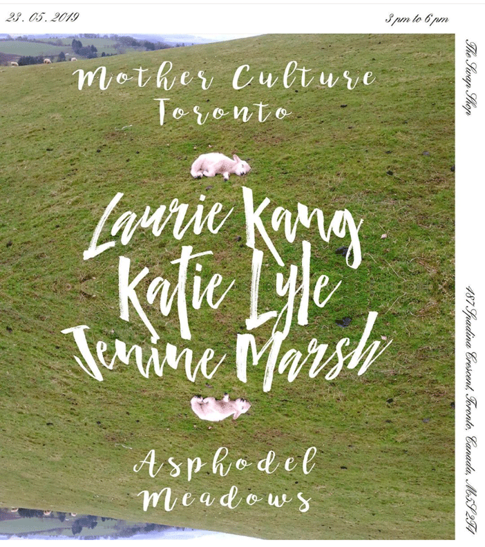~LAURIE KANG, KATIE LYLE, JENINE MARSH . . ‘ASPHODEL MEADOWS’ / MOTHER CULTURE, TORONTO / THURS MAY 23
