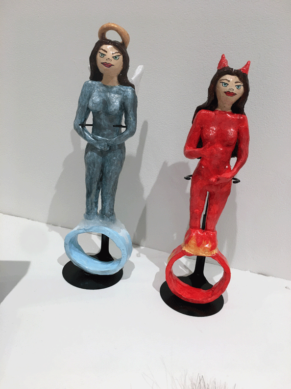Polymer clay, acrylic paint, nail polish, varnish, hot glue.