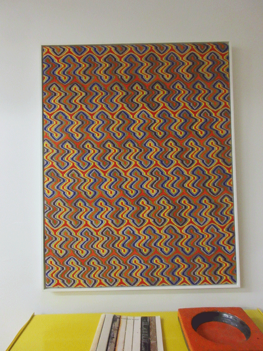 SUE RAVITZ, colorfield / & tightly patterned . . needlepoint.