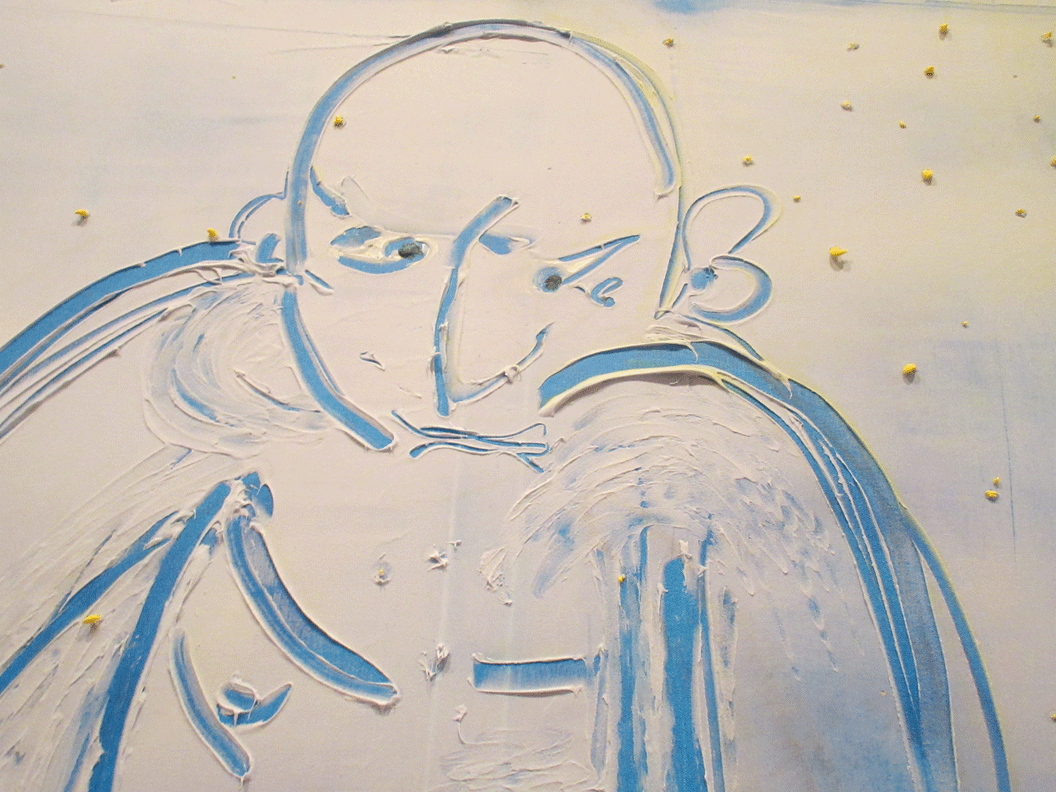 acrylic, styrofoam, screws, on canvas / 78 x 48 x 5.25 in.