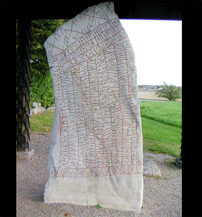 using cipher runes, the Elder Futhark and the Younger Futhark, on the 9th C. Rok Runestone in Sweden.