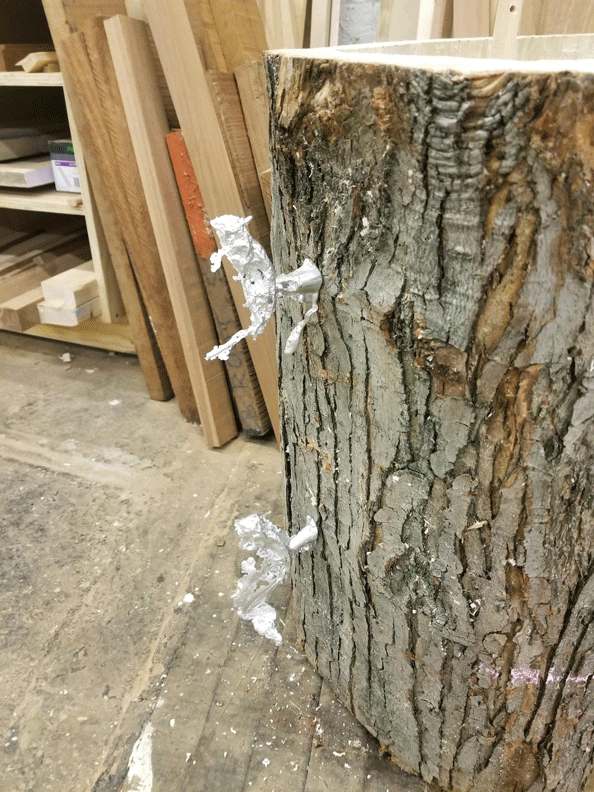Daniel . . sources his mostly ‘found’ materials in the area / these ole tree stumps – were cut down by his dad.