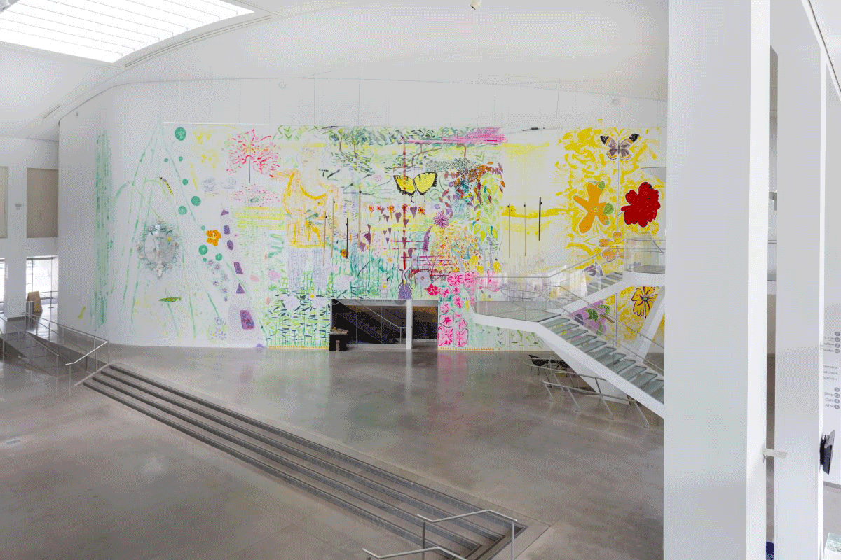 A multimedia installation, the work combines Howard’s vivid, gestural portraiture on the surface of the 40-foot wall